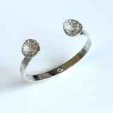 Brilliant faceted crystals fill these geode cups on a textured cuff  bracelet.